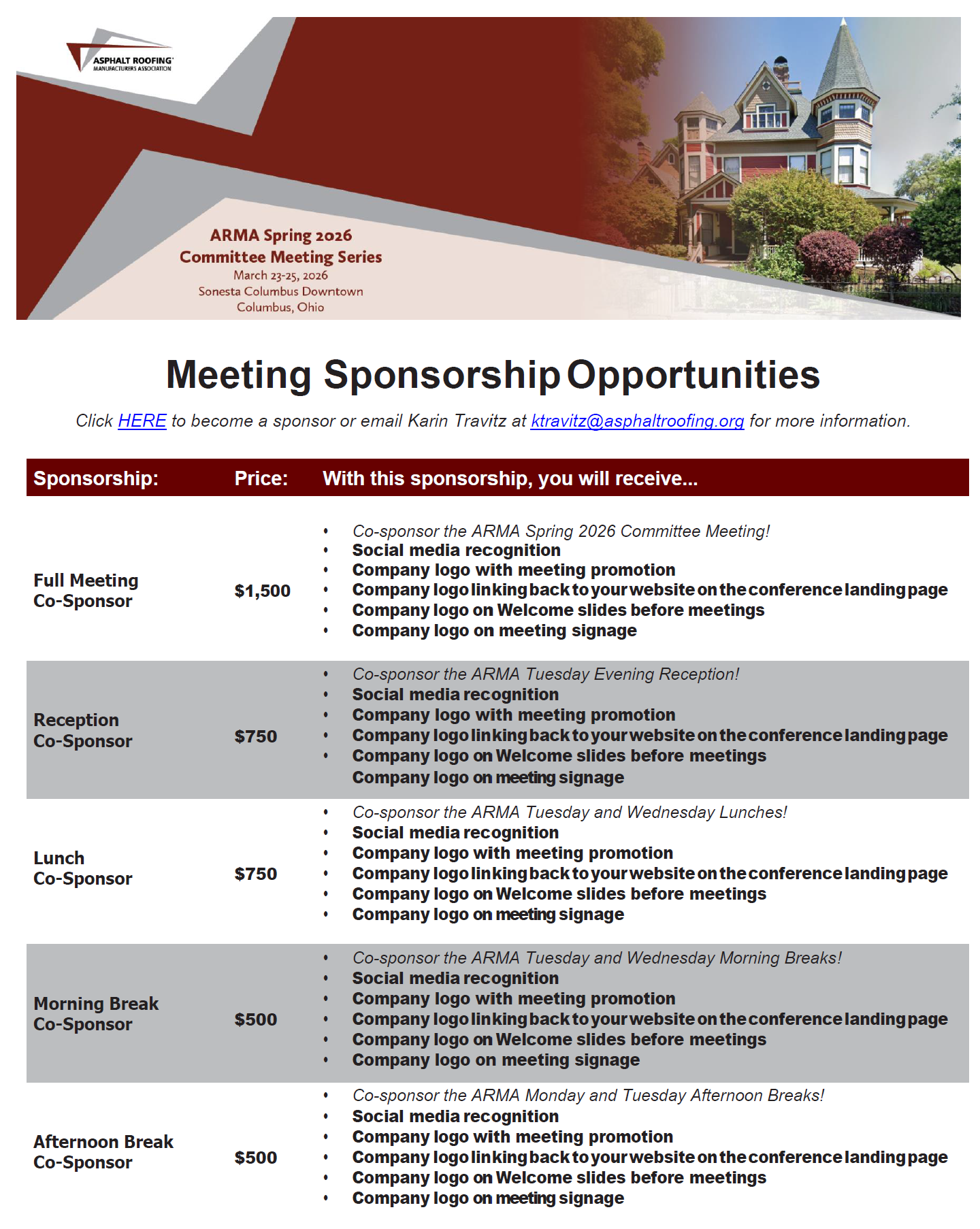 | 1:45 pm - 3:00 pm | Asphalt Roofing Recycling Committee (ARRC) Meeting |